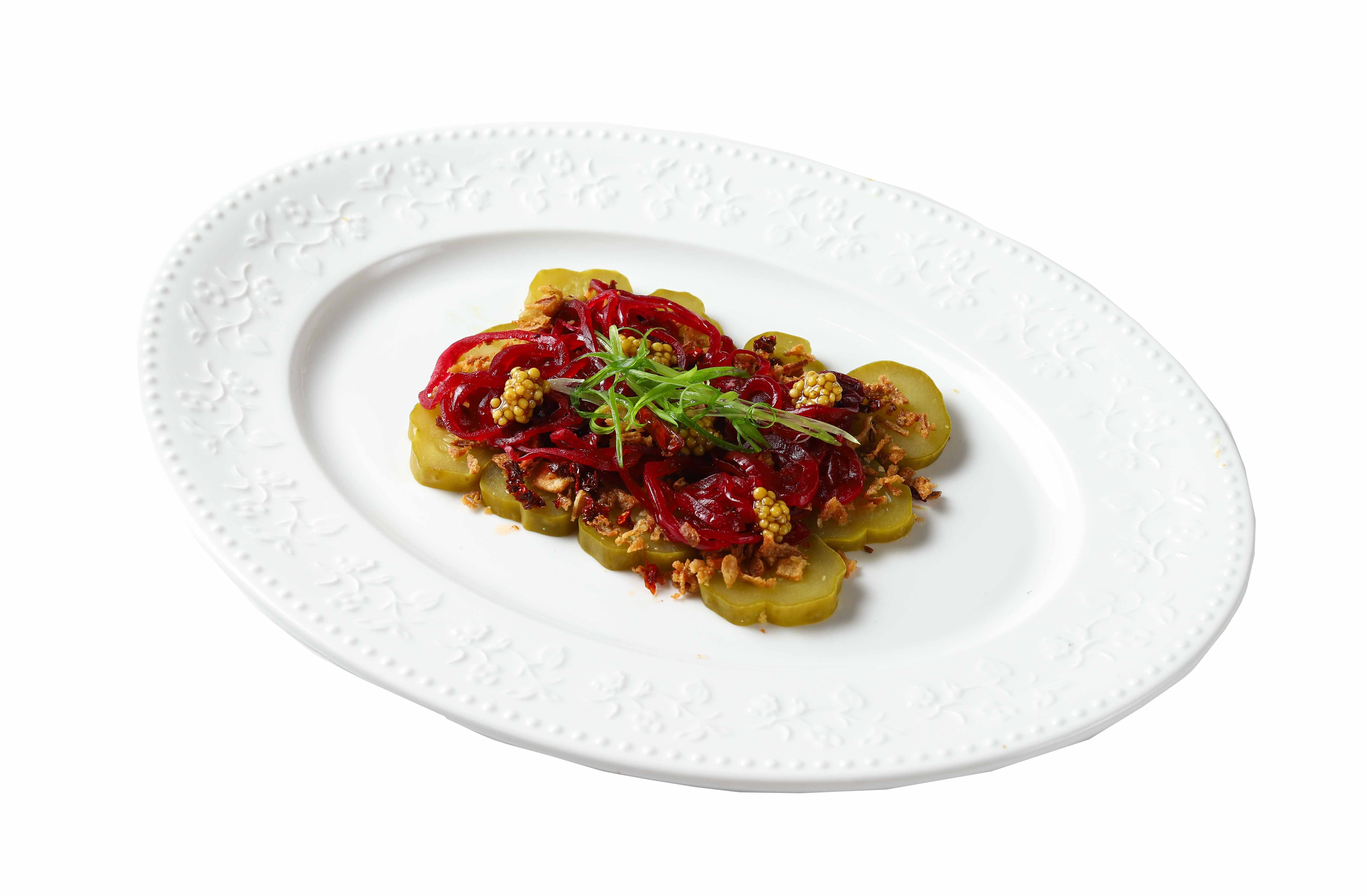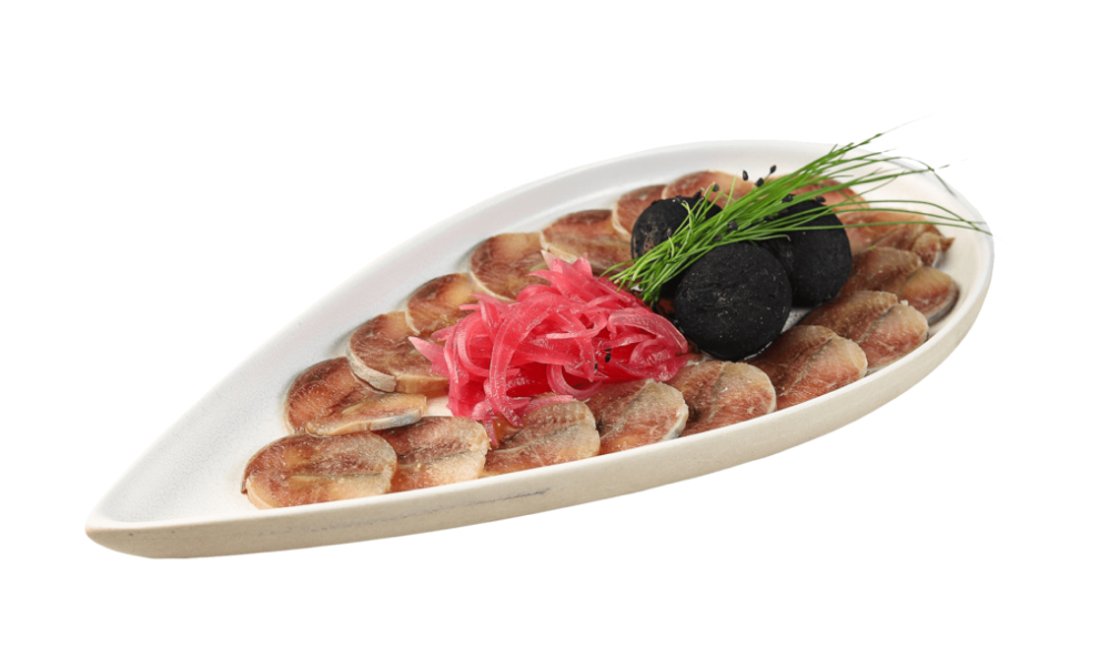 Карпаччо из северной сельди/картофель в золе/смородиновый лук