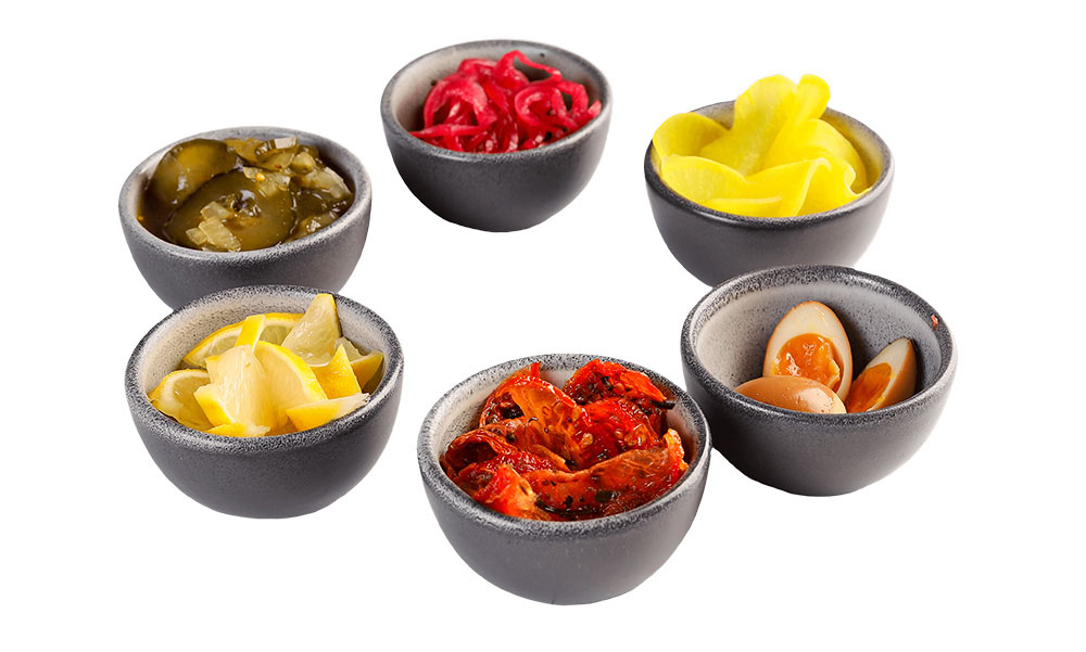 Насыщенный рыбно-мясной бульон с добавлением креветок, охотничьих колбасок, копчёного брискета и ферментированных огурцов