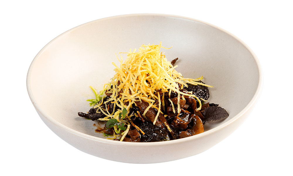 Беф а-ля Строганов из бычьего сердца в сливочно-трюфельном соусе