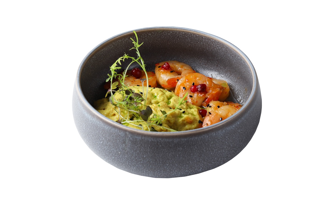 Очищенные тигровые креветки в сладком соусе чили и воздушном карри