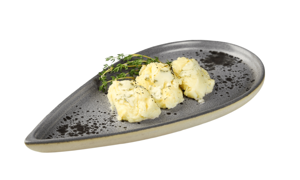 Картофельное пюре с добавлением сливок, лука пай и двух видов сыра : пармезана и монте блун